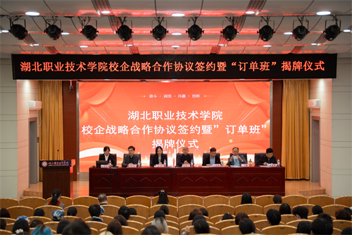 (本網訊 王丹 戴卓 馬江浩 李蓓蕾)10 月17日,湖北職業技術學院與華強方特(孝感)文化科技有限公司、萬豪國際集團校企戰略合作協議簽約暨“訂單班”揭牌儀式在西區文博館學術報告廳舉行。武漢卓爾萬豪酒店總經理高明、萬豪國際集團校企合作華中區代表楊駿、華強方特(孝感)文化科技有限公司人力資源部部長萬俊濤,我校黨委委員、副校長白夢清等出席,教務處、對外合作交流處、財經與旅游學院負責人及訂單班學生等共同見證校企攜手、開啟新程的重要時刻。