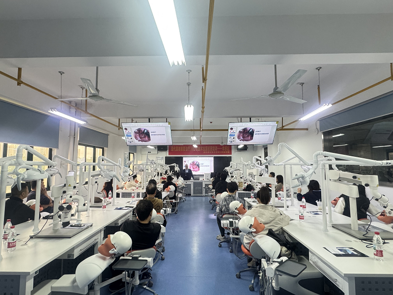 培訓當天,學院專任教師以“學員+觀察員”的雙重身份深度參與培訓全程。上午的理論授課環節,教師們與來自全國各省市的口腔醫師一同聆聽行業專家講解“顯微鏡下根管治療的全新思維”、“現代根管治療最前沿技術”等,并實時記錄課程設計邏輯與教學方法;下午的實操培訓階段,教師們圍繞“顯微鏡下的根管擴大技術”“活髓保存技術臨床”“MTA充填技術”等核心技能。