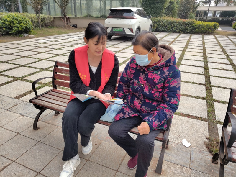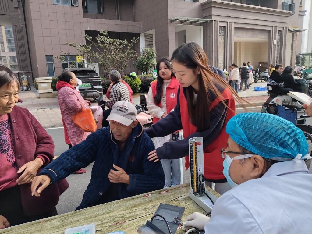 隨著居民陸續駐足,重陽節公益集市正式拉開帷幕??谇会t學院“星光益行”的志愿者們穿梭在各個服務區域:在口腔義診區,他們熱情引導居民排隊,為等候的老人遞上熱水,配合專業老師記錄檢查結果,遇到害怕看牙的小朋友,便蹲下身用“檢查完牙齒能去領重陽小禮品”的溫柔話語安撫;在普法宣傳區,他們拿著宣傳手冊,用通俗的語言為居民講解老年人權益保護、反詐防騙等法律知識;在便民服務區,有的志愿者協助理發師為老人圍好圍布,有的幫居民遞送需要打磨的刀具;在親子烹飪體驗區,他們耐心指導家長和孩子制作重陽糕,手把手教小朋友揉面、塑形,現場滿是歡聲笑語。