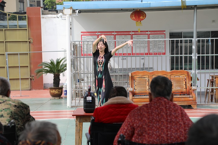 湖北職院石榴紅志愿服務隊成員葉拉曼來自新疆阿勒泰,他動情地說:“孝感是中華孝文化名城,更是我們共同的家園,見到爺爺奶奶就是見到親人?!毕哪舅箒喭瑢W感慨:“這就是實實在在的‘孝疆一家親’?!?/span>