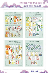 廣告藝術設計專業的作品則以多元表達傳遞文化內涵與社會價值。24 節氣插畫系列將傳統節氣文化與現代插畫風格相結合,色彩明快、創意十足,讓傳統文化在視覺藝術中煥發新生;剪紙、窗花作品傳承非遺技藝,以精巧的剪裁、吉祥的寓意,展現了傳統手工藝的獨特魅力;海報系列與防震減災科普系列作品則聚焦社會熱點與公益傳播,通過鮮明的視覺語言、通俗易懂的表達形式,傳遞防災知識與社會責任,體現了設計學科的社會價值導向。