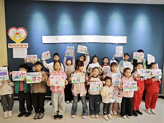 創作環節結束后,孩子們興奮地舉起自己的畫作,爭先分享作品背后的社區故事:“我畫的是每天上學路過的十字路口,志愿者哥哥說要注意交通安全!”“我的畫里是我和小伙伴們一起在社區里做志愿服務的場景!”……分享環節充滿了童真與自豪。隨后,志愿者們為在活動中表現突出、創意非凡的小隊員頒發了獎項和文具禮包作為鼓勵。最后的合影環節,定格下了一張張燦爛如花的笑臉,孩子們手中五彩斑斕的畫作與他們純真無邪的笑容交相輝映,共同構成了社區里最為動人的溫暖風景。