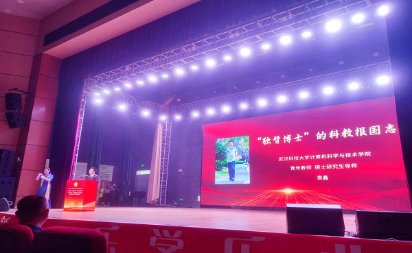 (袁鑫在湖北職院崇德禮堂作勵志報告)